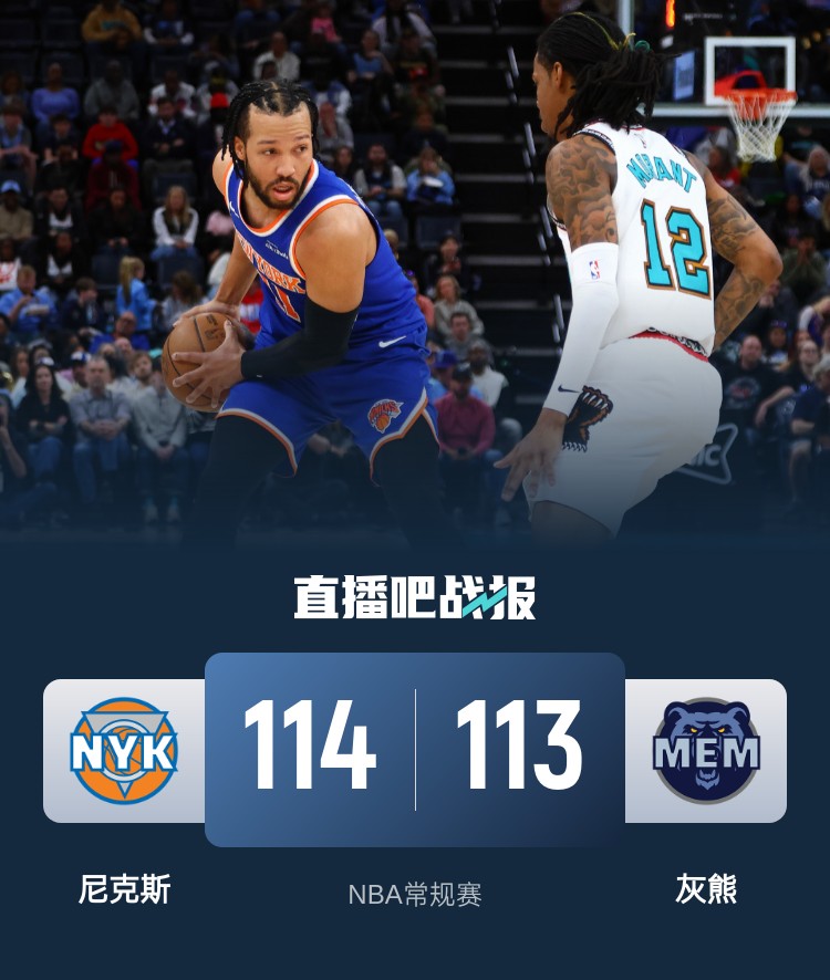 OG三分准绝杀 莫兰特25+7 布伦森23+7+6 尼克斯1分险胜灰熊