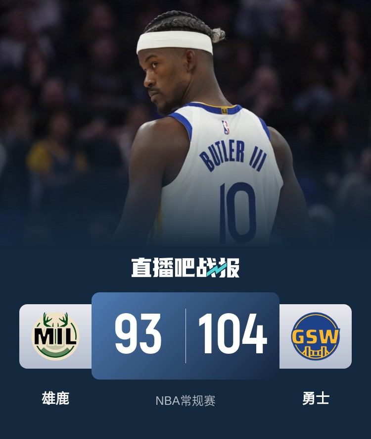 巴特勒打满末节24+8+10 库里缺战 字母哥16中5 勇士双杀雄鹿