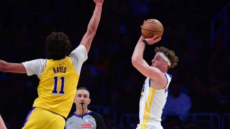 湖人当然紧贴库里,持续合围,但对波杰没那么在意。波杰于是开火。第一节前半海耶斯在,波杰远射咬住分差;后半段,库明加来冲湖人无中锋内线。