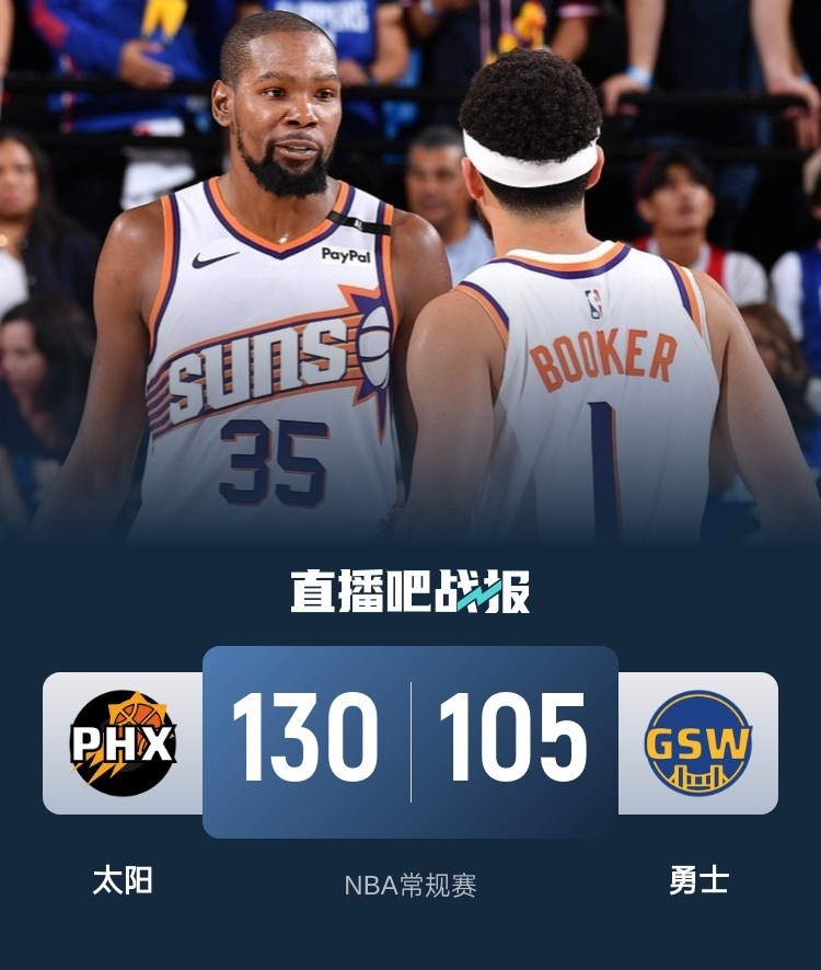布克31+11 杜兰特19+6 库里14分&上半场仅2分 太阳大胜勇士