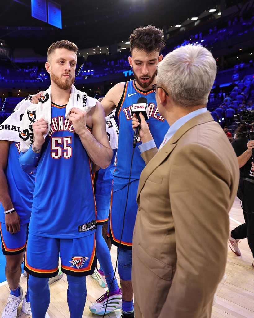 当被问及雷霆对阵步行者的G2首次使用双塔阵容,霍姆格伦说道:“我在场上感觉不错。显然,当另一个大个子球员技术全面、移动灵活,能和你沟通并轮换位置时,比赛会更轻松。有时,哈滕在场上和我搭档,这对我们帮助很大。总之,无论教练要求我们做什么,我们的任务就是做好准备并执行战术,这是我们一直在努力的方向。”