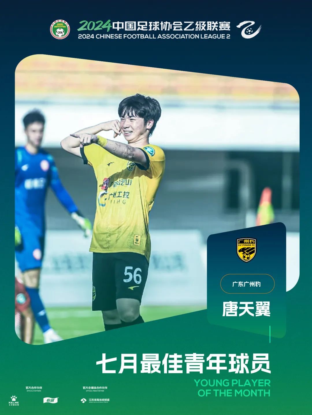 唐天翼出生于2007年1月,今年1月4日才刚年满18岁,目前是一名高三学生。2024赛季,唐天翼代表广东广州豹出场23次,攻入9粒进球贡献5次助攻。2024中乙联赛年度奖项,广州豹囊括五项个人奖项,其中唐天翼成为年度最佳青年球员。