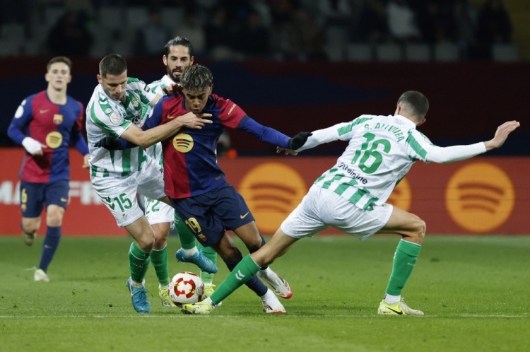 巴萨联赛取得9连胜,目前以3分优势领跑积分榜。奥尔莫和保·维克多被西甲官方宣布注册无效,两人将无法代表巴萨出战。卡萨多因伤缺席。克里斯滕森有望周末复出,特尔施特根也恢复了训练。贝蒂斯方面,近来联赛6连胜,积分逐渐接近前4。伊斯科累积黄牌停赛,无缘出战巴萨。安东尼在加盟后,已经贡献4球和4次助攻。进入2025年后,两队曾在国王杯中相遇,巴萨主场5-1取得大胜。