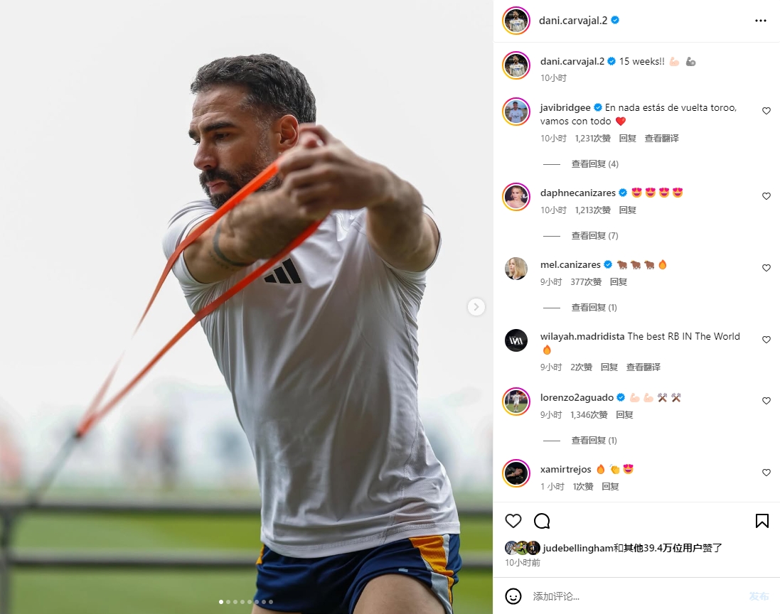 1月25日讯 卡瓦哈尔今天在社交媒体晒出自己进行康复训练的照片,多位队友留言送上祝福。