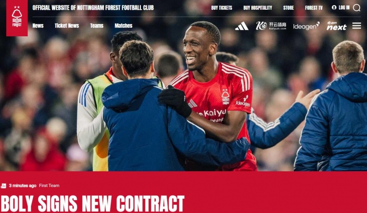 诺丁汉森林官方:科特迪瓦后卫博利续约至2026年