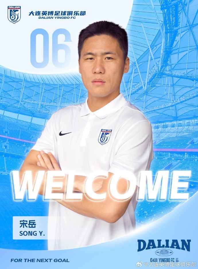 大连英博俱乐部20日宣布,中后卫宋岳加盟。这也是目前队中学历最高的球员,2010年至2017年,宋岳在河海大学完成了本科和研究生学业。